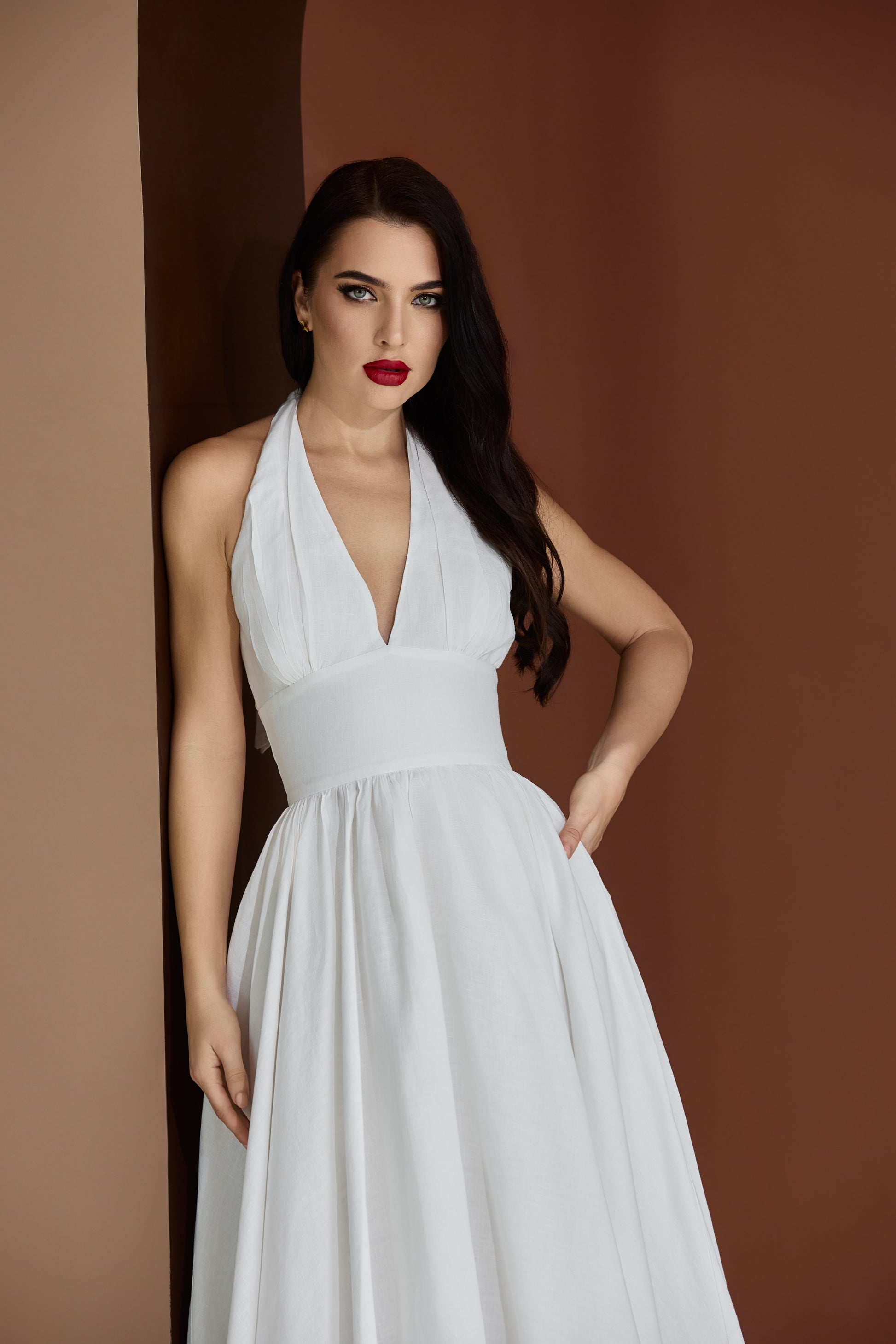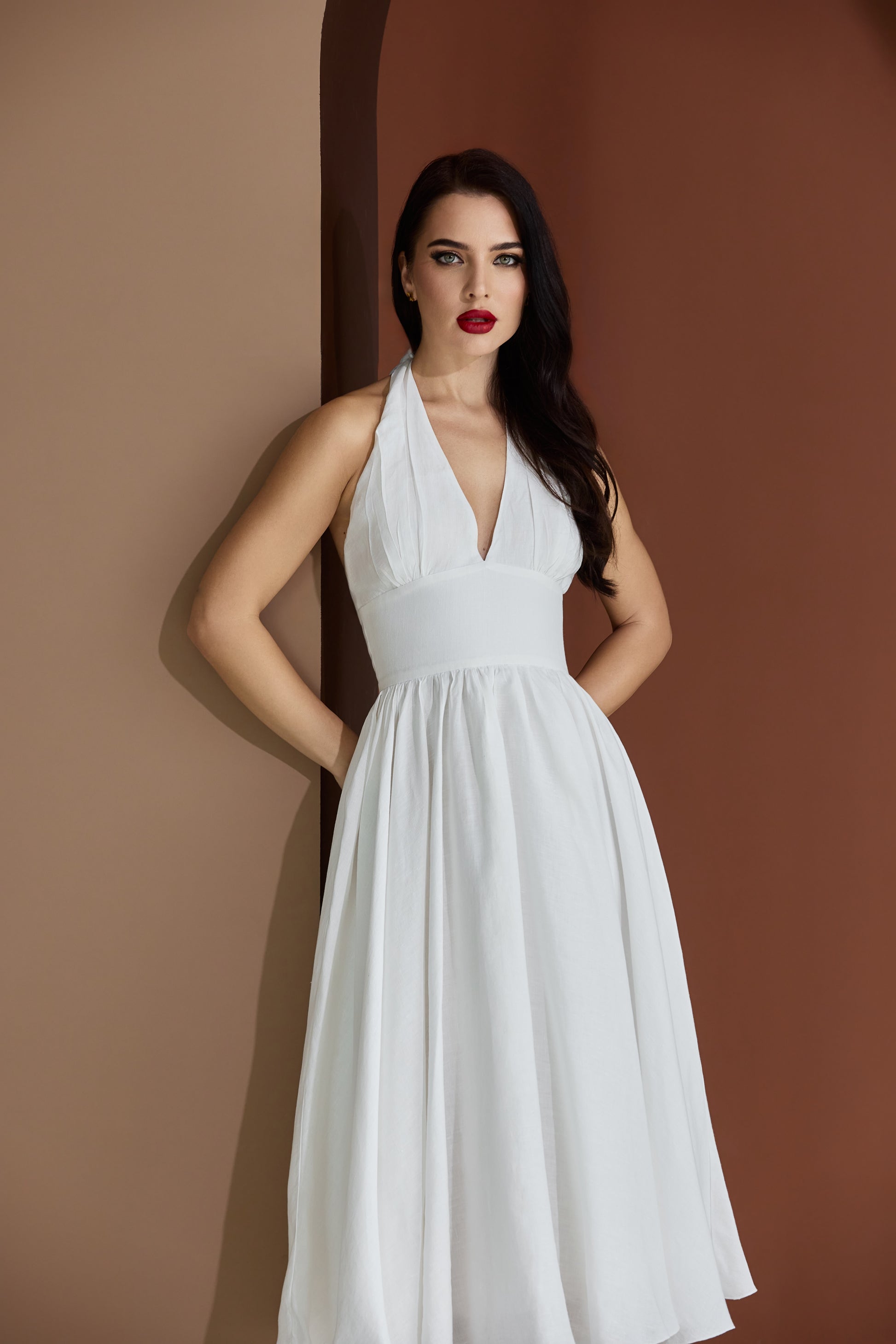 The Maria Dress in midi length crafted from premium 100% linen. Inspired by the elegance and femininity of the 1950s.